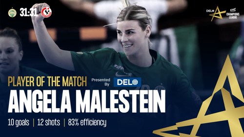 Brest line player Paulette Foppa finishes as the top scorer of the clash, with seven goals at 100 per cent accuracy, while backs Helene Gigstad Fauske (Brest) and Dejana Milosavljevic (Podravka) score six each.